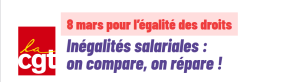 Toutes et tous en grève et en manifestation ! À l’occasion du 8 mars, la CGT appelle l’ensemble des travailleuses et travailleurs à se mobiliser pour l’égalité réelle, l’augmentation des salaires, la fin des violences et la reconnaissance de toutes les professions majoritairement féminines. 🔗 Retrouvez davantage d’informations sur le site égalité professionnelle de la …